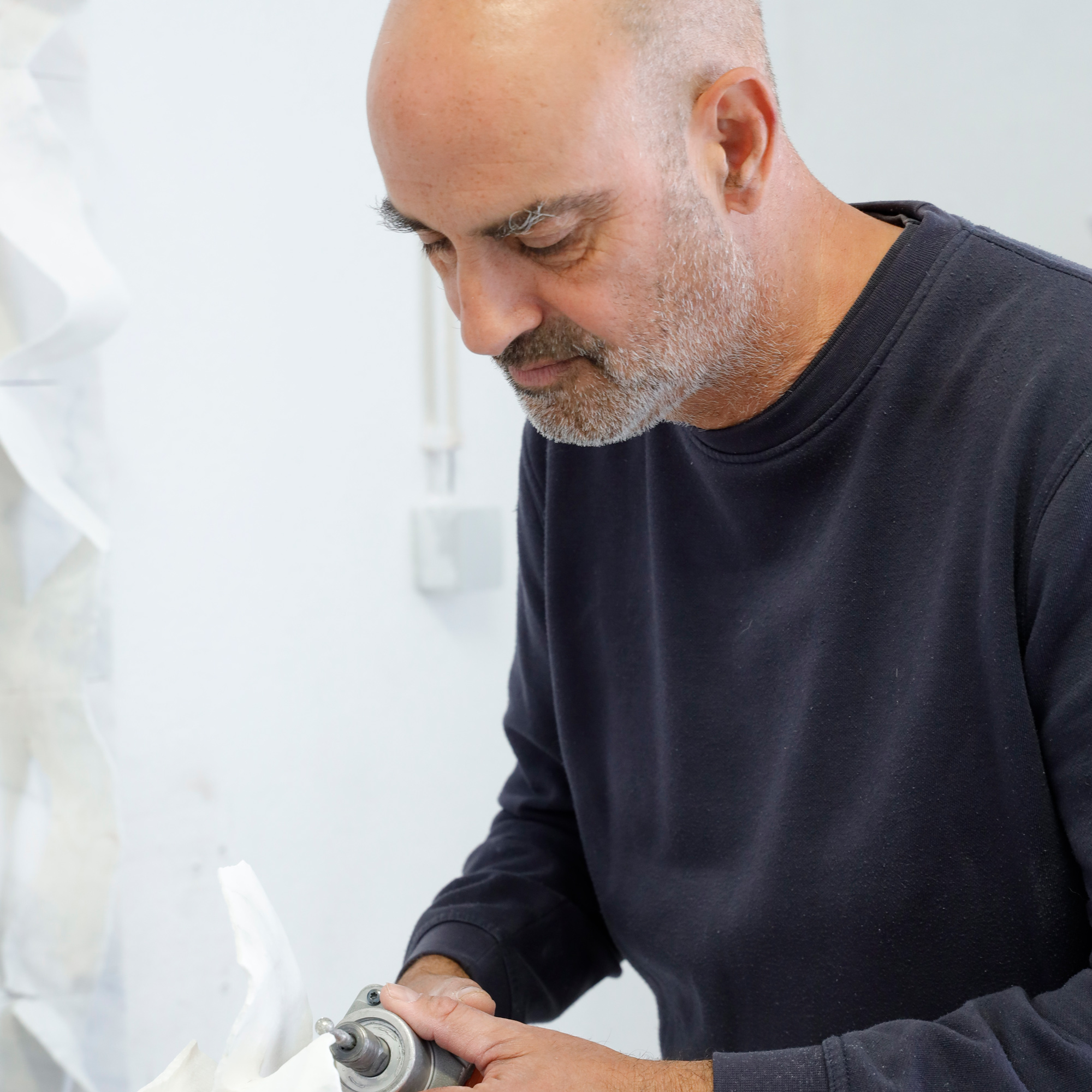 Carlos Andrade (Lisboa, 1968) es titulado en Historia del Arte por la Universidad Autónoma de Lisboa. Influenciado por la concepción que figuras destacadas como Brancusi tienen sobre el mármol, explora el material y desarrolla su producción artística en la que el simbolismo adquiere un papel esencial. Andrade transforma el robusto mármol en delicadas capas de piedra que dejan pasar la luz a través de ellas. De esta forma, los azarosos movimientos de sus composiciones pétreas evidencian un proceso artístico puramente orgánico guiado por el propio material.