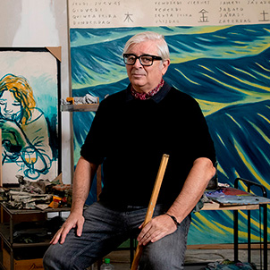 Javier de Juan (Linares, Jaén, 1958) es un artista multidisciplinar español cuyo trabajo abarca pintura, grabado, ilustración, muralismo y arte digital. Vinculado a la Movida madrileña y a la Nueva Figuración, cofundó la revista Madriz y la editorial Port Said, impulsando la visibilidad de artistas emergentes. Su obra combina tradición y experimentación, abordando la transformación urbana, el lenguaje gráfico y la narrativa visual.